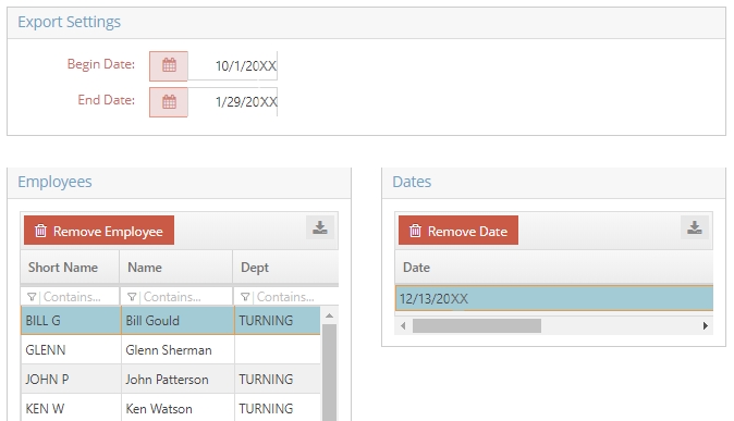 - (Optional) Click Remove Date to remove the selected time ticket for the employee selected on the employee grid.