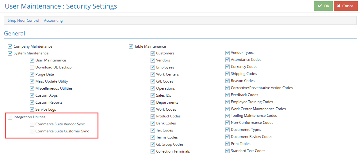 Use the following steps to synchronize your vendors and customers between JobBOSS2 and Commerce Suite by using Integration Utilities. Before syncing, users must be granted the appropriate security permissions.