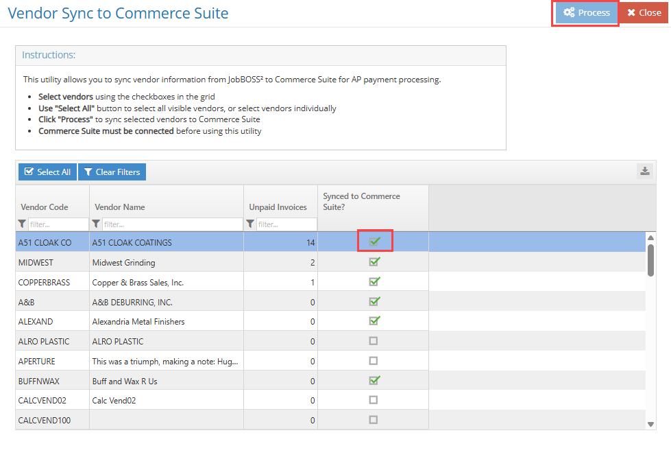 Note: Only US Vendors will sync to Commerce Suite.